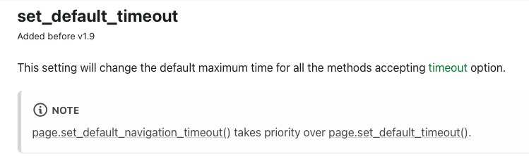 De facto ändert diese unterschiedliche Einstellung aber nichts. In Playwright Python gilt der „eigene“ Default Timeout von 30 Sekunden und in Playwright (JavaScript/TypeScript) greift der „generelle“ default_timeout von 30 Sekunden. Also beides Mal effektiv 30 Sekunden.